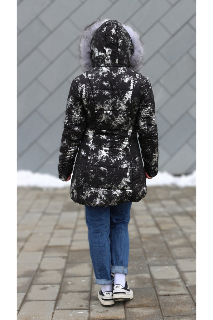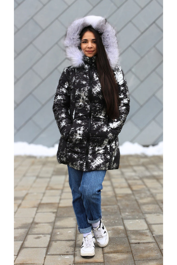 Яке ЕСТЕСТВЕН ПУХ качулка, сребристи елементи