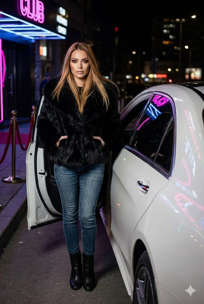 Това дамско палто с еко косъм е създадено за жени, които обичат изчистената луксозна визия и държат на комфорта в студените дни. Моделът е изработен от мек и плътен еко косъм, който придава богато излъчване и усещане за истинска топлина.